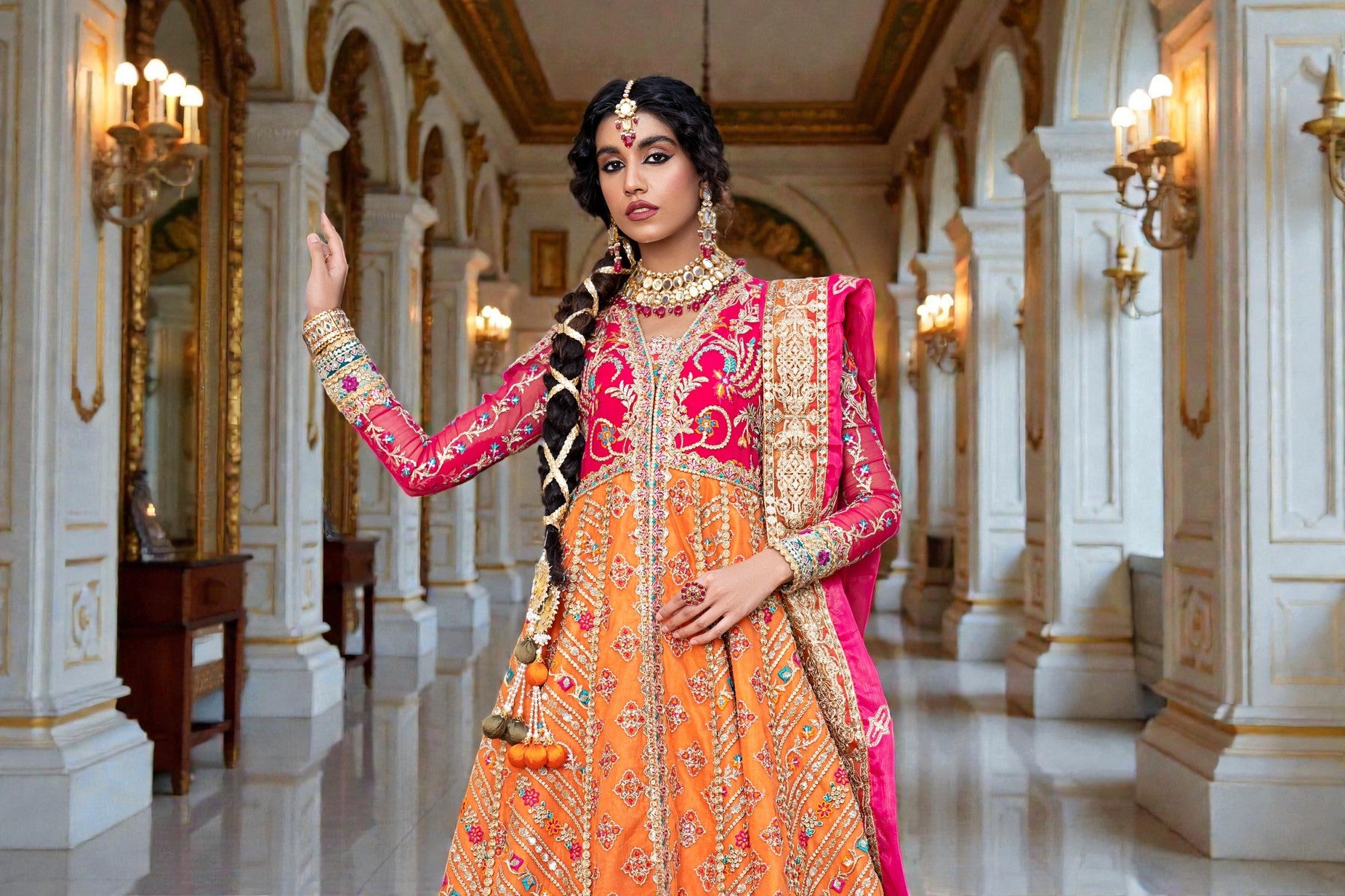 Embroidered Sleeve patti patch-2 (Organza) 1pc Embroidered Dupatta (Organza) with pallu patti patch (Organza) 2.70Yrds
